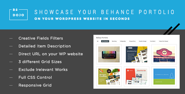 That made us think how to solve this issue. And the solution is simple – let’s just use the content you already inserted over the years on your Behance profile and include it into your website. Because we know how time consuming is to add all your portfolio’s works on a WordPress website.