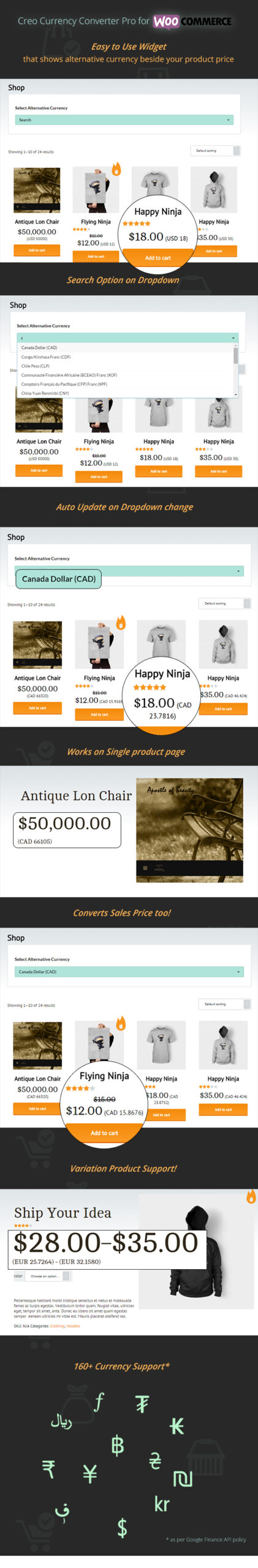 Version 1.1.1, December 05 2015 ------------------------------------------------------------------------------------ [*] Variation Product price Conversion Fixed [*] Unnecessary files removed Version 1.1.0, December 05 2015 ------------------------------------------------------------------------------------ [*] Google Finance API replaces Yahoo Finance API Version 1.0.1, September 25 2015 ------------------------------------------------------------------------------------ [*] Changed product name to Converter Version 1.0.0, September 16 2015 ------------------------------------------------------------------------------------ [+] Initial Release