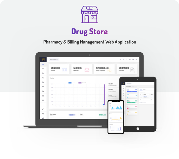 Toko Obat adalah sistem manajemen apotek yang dikembangkan dengan PHP. Tema Toko Obat adalah solusi terjangkau untuk membantu mengembangkan bisnis Anda dan melacak data toko Anda seperti stok, pembelian, penagihan dan laporan, laporan pembelian, dan banyak hal lainnya. Ini menyimpan semua data apotek Anda untuk pengambilan dan pelacakan yang mudah termasuk Obat-obatan, Karyawan, Pelanggan, POS / Tagihan, Faktur, Pembelian, penyesuaian Stok, Akuntansi, Pengeluaran, Kehadiran, Penggajian, Kehadiran, Laporan, dan Pengguna. Anda dapat membuat beberapa peran admin. Kelola semuanya dari satu aplikasi yang sederhana namun kuat.
