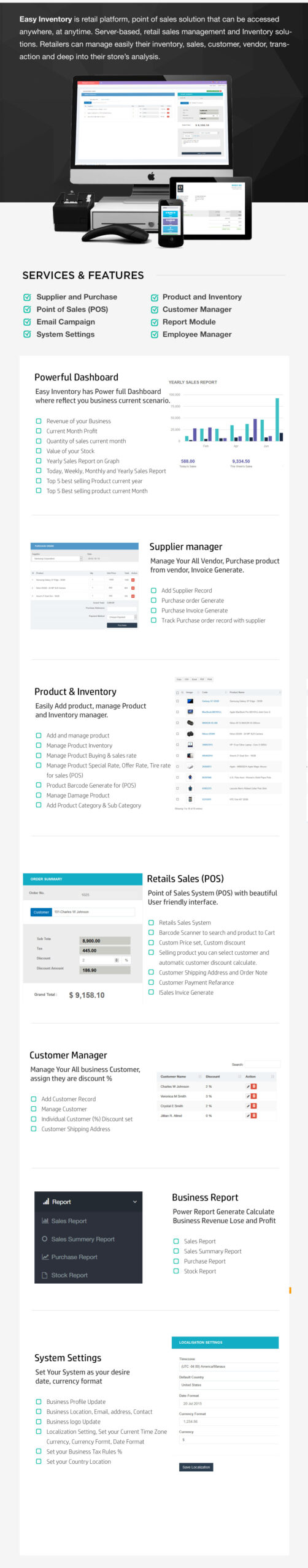 2016-10-19 - Update: Mega Menu Gear (menu shortcut) - Update: Invoice Email Template 2016-10-17 (v1.2) - fixed: All Bug Issues - fixed: Responsive Issue - fixed: Revenue, Profit Calculation - Update: Dashboard Reporting System - Update: Added Sales Summary Report - Update: Added Stock Summary Report - Update: Added Custom Date, Currency, Time-Zone select options - Update: Cancel Order, Delete Order - Update: DataTables PDF, EXCEL, CSV Export Options - fixed: Update DataTables for Responsive Table - fixed: User Friendly POS System - improved: Better UI Interface for User. - improved data collation/encoding (data and mysql)