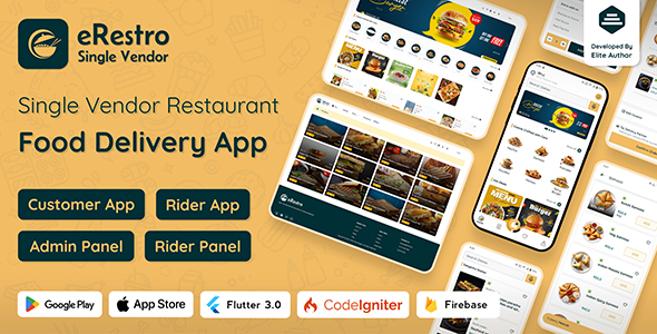 eRestro offers a full-featured Food Delivery Restaurant management system, including user and delivery apps, with a powerful admin panel built on the CodeIgniter framework for streamlined restaurant business management.