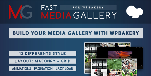 Welcome to Fast Media Gallery for WPBakery. With this awesome plugin you can build your media gallery using WPBakery. You can choose beetween 13 differents style with grid or masonry layout. You can choose your responsive version with default responsive, custom responsive or fluid responsive.