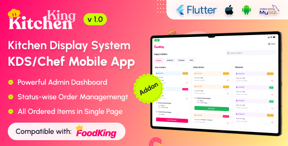 The ** KitchenKing Kitchen Display System (KDS) App** is an essential part of our **FoodKing restaurant ordering ecosystem**, designed to streamline kitchen operations and improve order management. This digital display system replaces traditional paper tickets, ensuring real-time order updates and efficient communication between the front-of-house and kitchen staff.