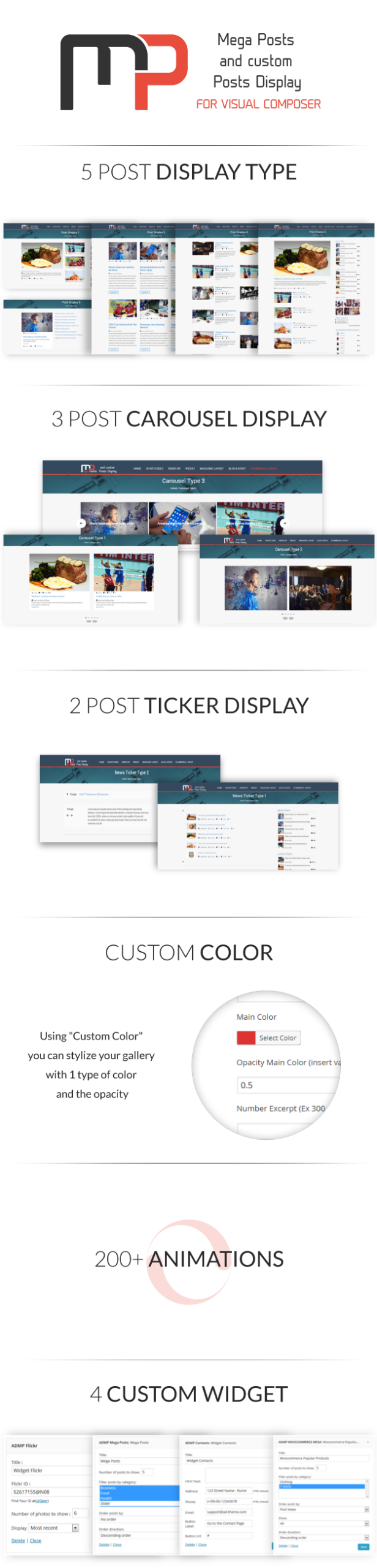 Selamat Datang di Posting Mega untuk Komposer Visual. Dengan plugin luar biasa untuk Visual Composer ini Anda dapat membuat tata letak posting dalam beberapa langkah. Anda dapat memilih antara 5 tampilan posting, 3 jenis carousel dan 2 jenis ticker berita.