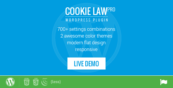 is a multipurpose, fully responsive cookie consent notification which will help you to fulfill the obligation, required by the law of the European Union, to inform users about cookie files usage on your website. By using the Cookie LawPRO on your WordPress based website you comply the EU law requirements.
